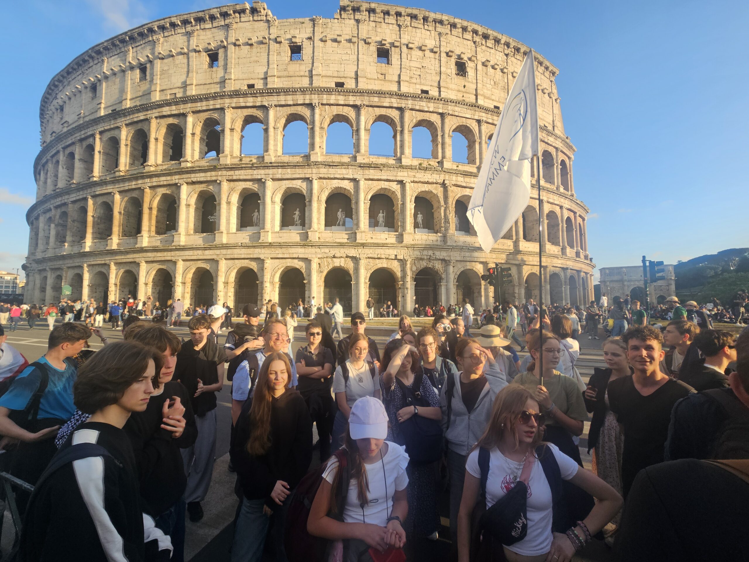 Każdy zabrał w plecaki tylko konieczne rzeczy, bo zapowiada się dużo wędrowania. Dla bardzo wielu to pierwszy lot samolotem i wyjazd za granicę. Wieczorem jesteśmy w Rzymie, Wiecznym Mieście, ciężko odróżnić stare od współczesnego, wszystko jest interesujące i „podobno tu prysznice są na żetony?”.