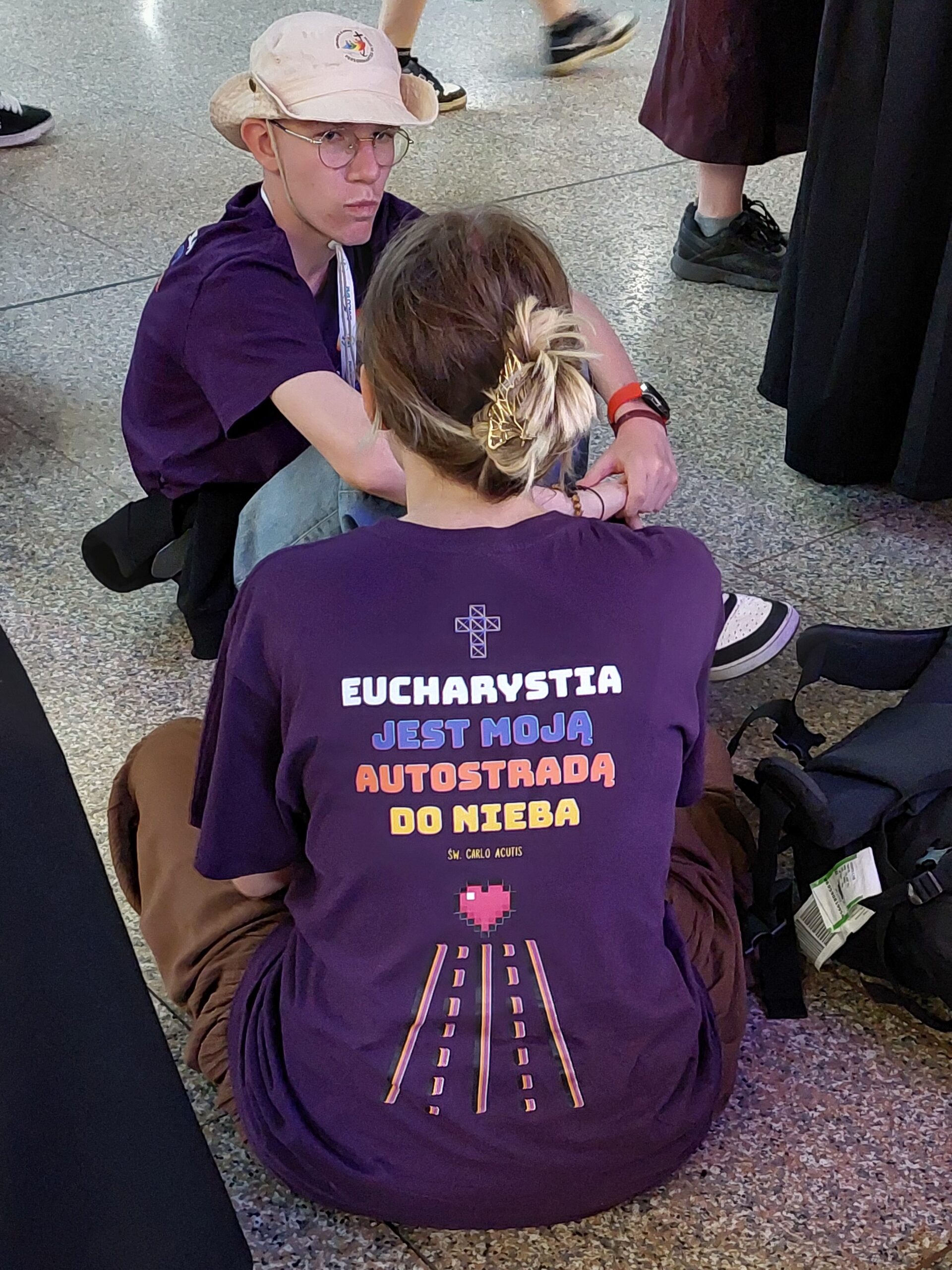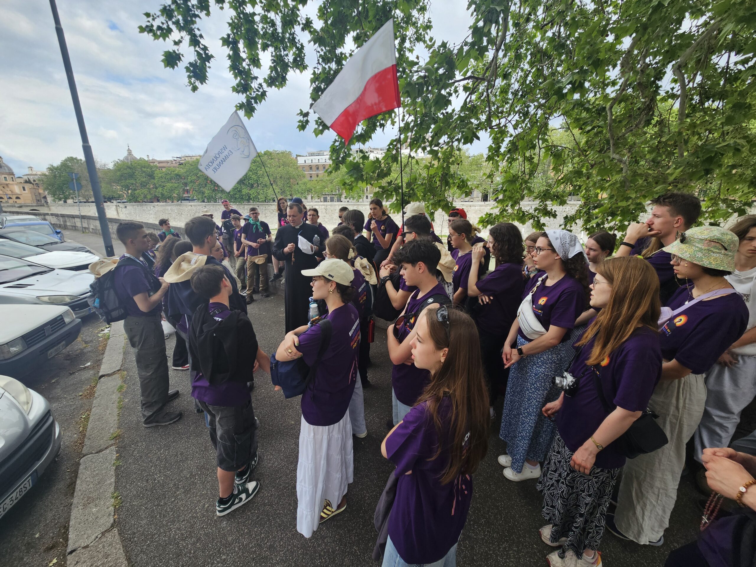 Niedziela była trudna logistycznie. Prawie pięćdziesiątka ludzi, bagaży i plecaków musiała się zmieścić do małego miejskiego autobusu. Udało się! Dojechaliśmy w pobliże Castel Sant’Angelo, gdzie w domu dla polskich księży studentów mogliśmy przechować bagaże. Chcieliśmy iść na Mszę Świętą w Watykanie, ale policja całkowicie zamknęła ruch. Bóg chciał okazać nam swoje miłosierdzie. Cofnęliśmy się i odprawiliśmy Mszę Świętą w kaplicy Papieskiego Instytutu Polskiego, gdzie przyjęli nas księża Mateusz i Franciszek. To było dla nas prawdziwe Święto Miłosierdzia i wielu nastolatków skorzystało z sakramentu pojednania! (Szczegółów posłuchajcie w wywiadzie radiowym)