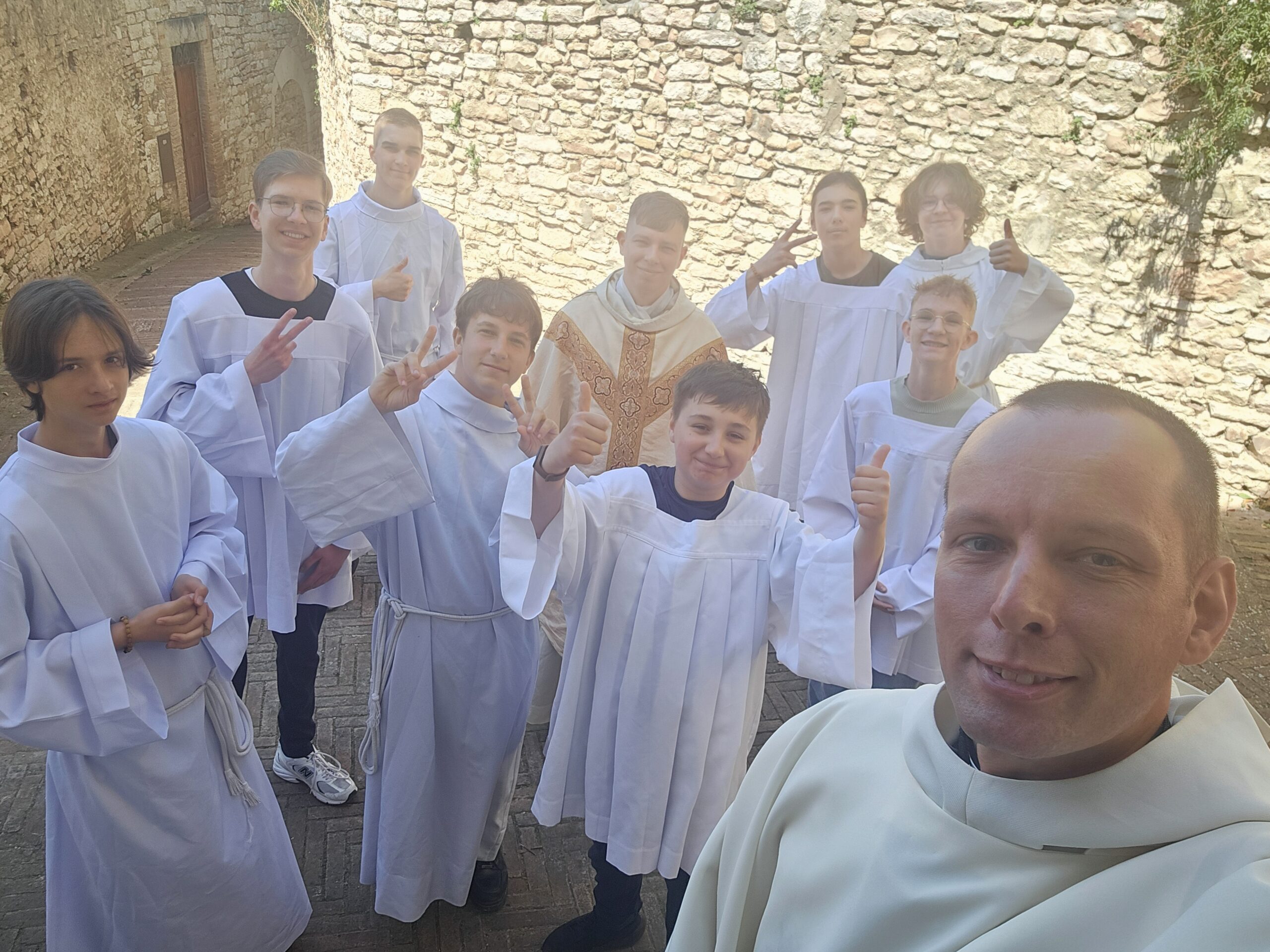 Poniedziałek to dzień Świętego Franciszka, Klary i Carlo Acutisa. Rano odprawiliśmy Mszę Świętą w romańskim Chiesa di Santo Stefano, który pamięta czasy św. Franciszka i znajduje się na wprost domu wakacyjnego Carlo Acutisa. Później odwiedziliśmy miejsce urodzenia, domu i uwięzienia św. Franciszka, modliliśmy się przy trumnie błogosławionego Carlo Acutisa i w Bazylice św. Klary przy Krzyżu, z którego Jezus przemówił do św. Franciszka. Potem odwiedziliśmy klasztor San Damiano i udaliśmy się do najważniejszej wielopoziomowej Bazyliki św. Franciszka, gdzie znajduje się jego grób. Wieczorem podziwialiśmy cudowną panoramę ze wzgórza zamkowego Rocca Maggiore. Dzień zakończył się wspólną modlitwą i podsumowaniem najważniejszych wydarzeń z wyjazdu.