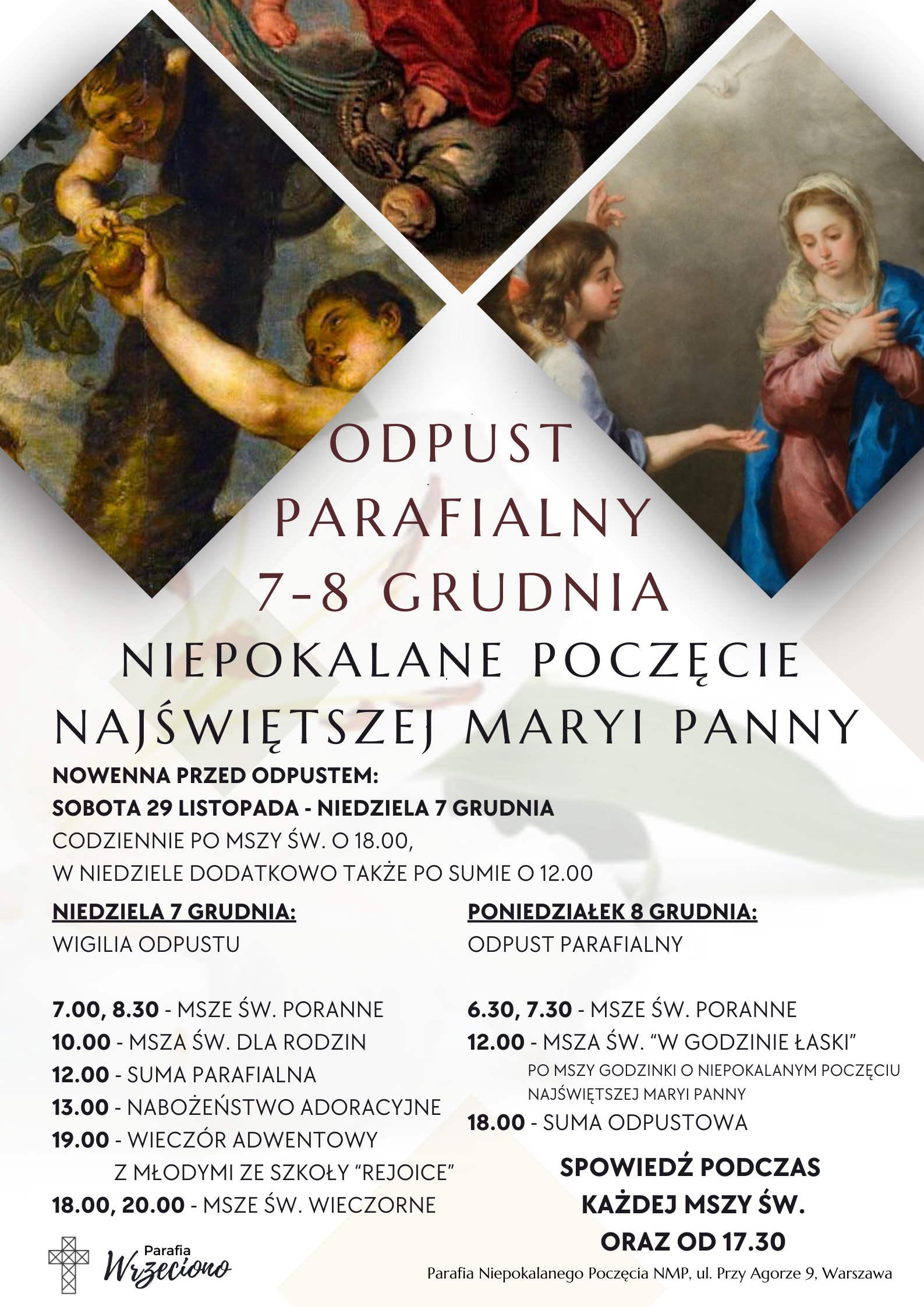 PONIEDZIAŁEK 8 GRUDNIA – ODPUST PARAFIALNY