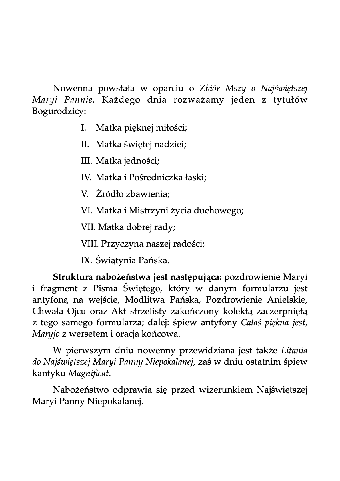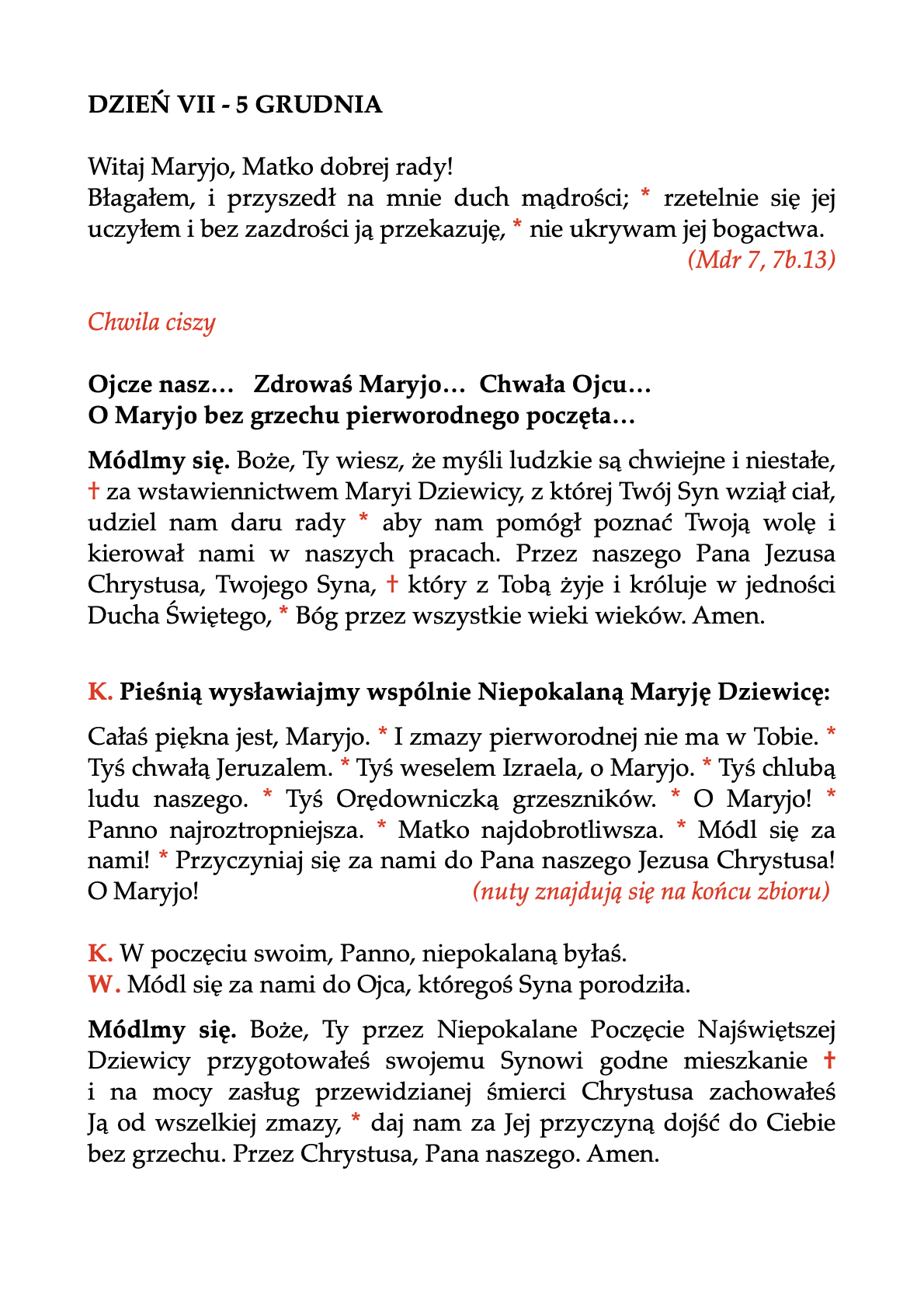 – w kolejne dni nowenna codziennie po Mszy św. o 18.00, w niedziele dodatkowo także po sumie o 12.00.