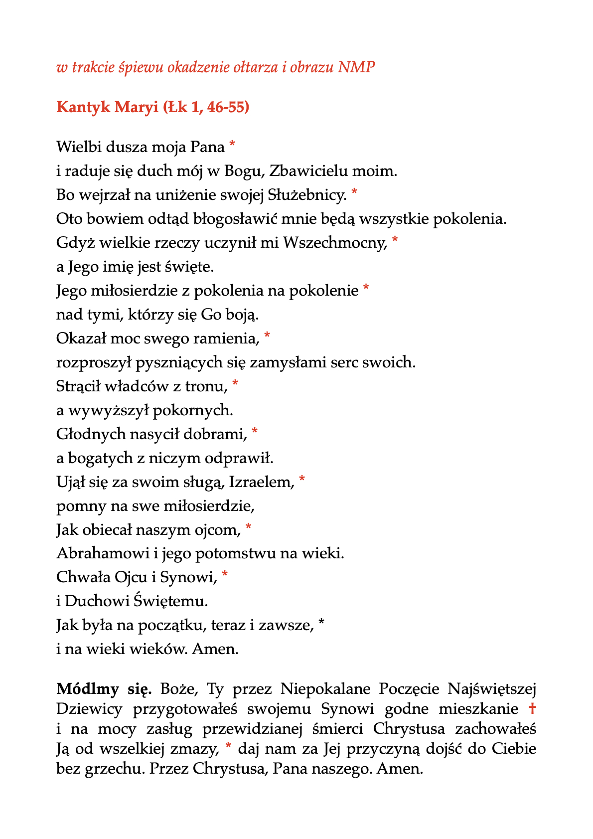 12.00 – Msza św. „w Godzinie Łaski” zakończona wspólnym śpiewem godzinek ku czci NMP;