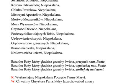 Obchodzimy główną uroczystość odpustowa naszej parafii – Niepokalane Poczęcie NMP. Za modlitewne nawiedzenie naszego kościoła możemy w tym dniu pod zwykłymi warunkami (stan łaski uświęcającej, Komunia Św., modlitwa wg. int. Ojca Świętego) uzyskać odpust zupełny.