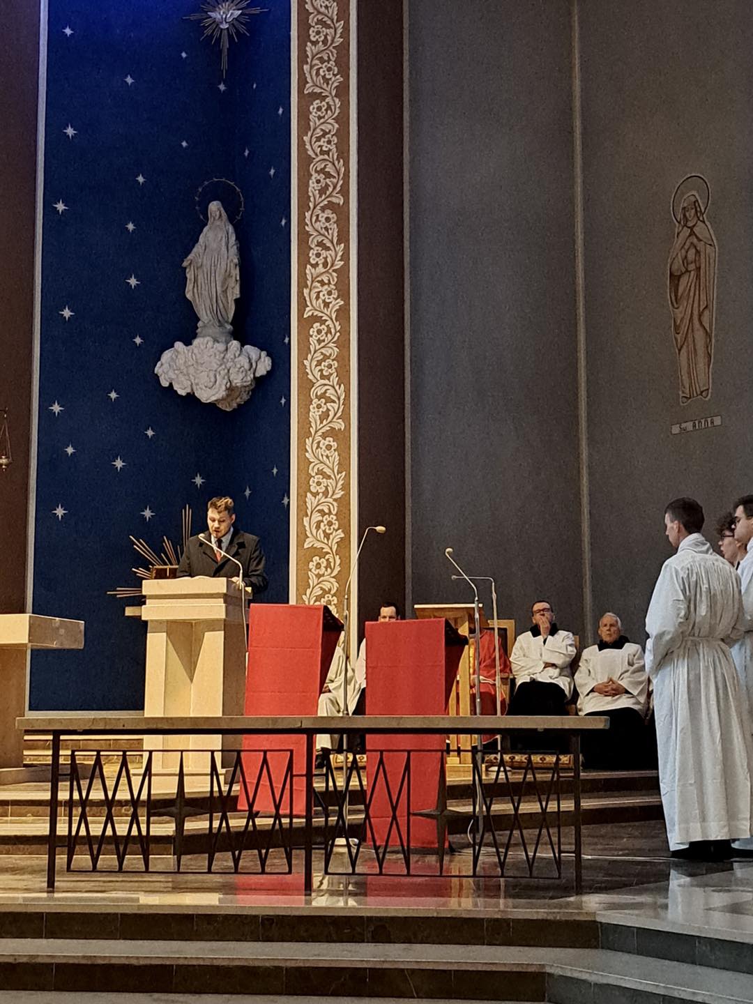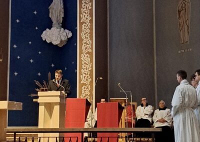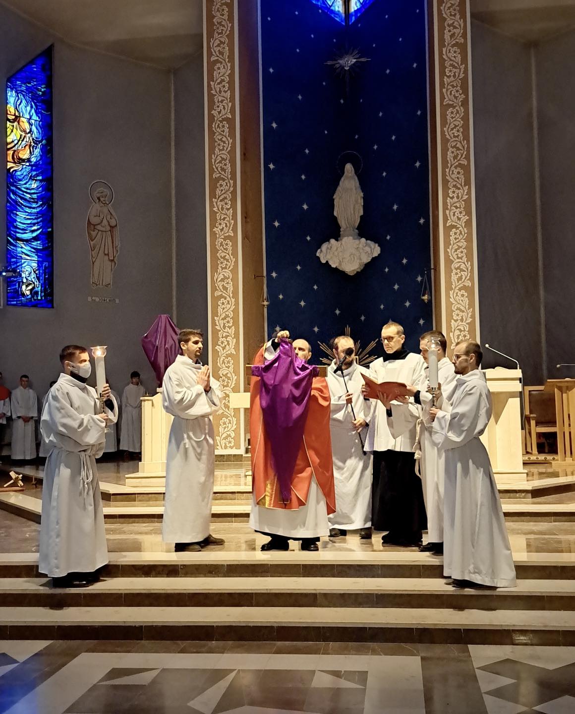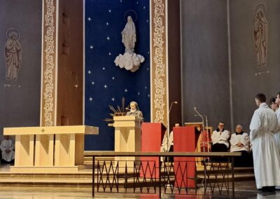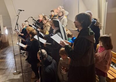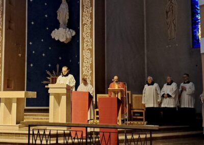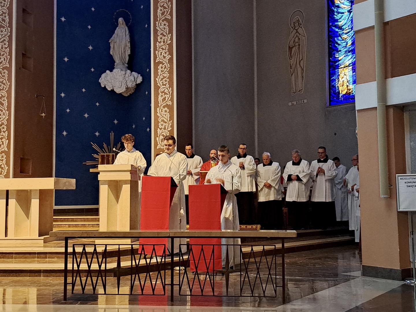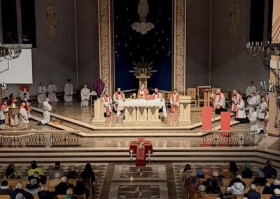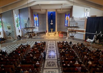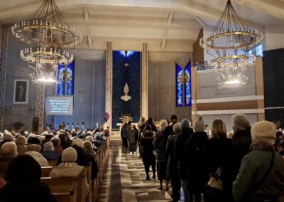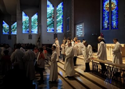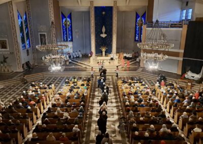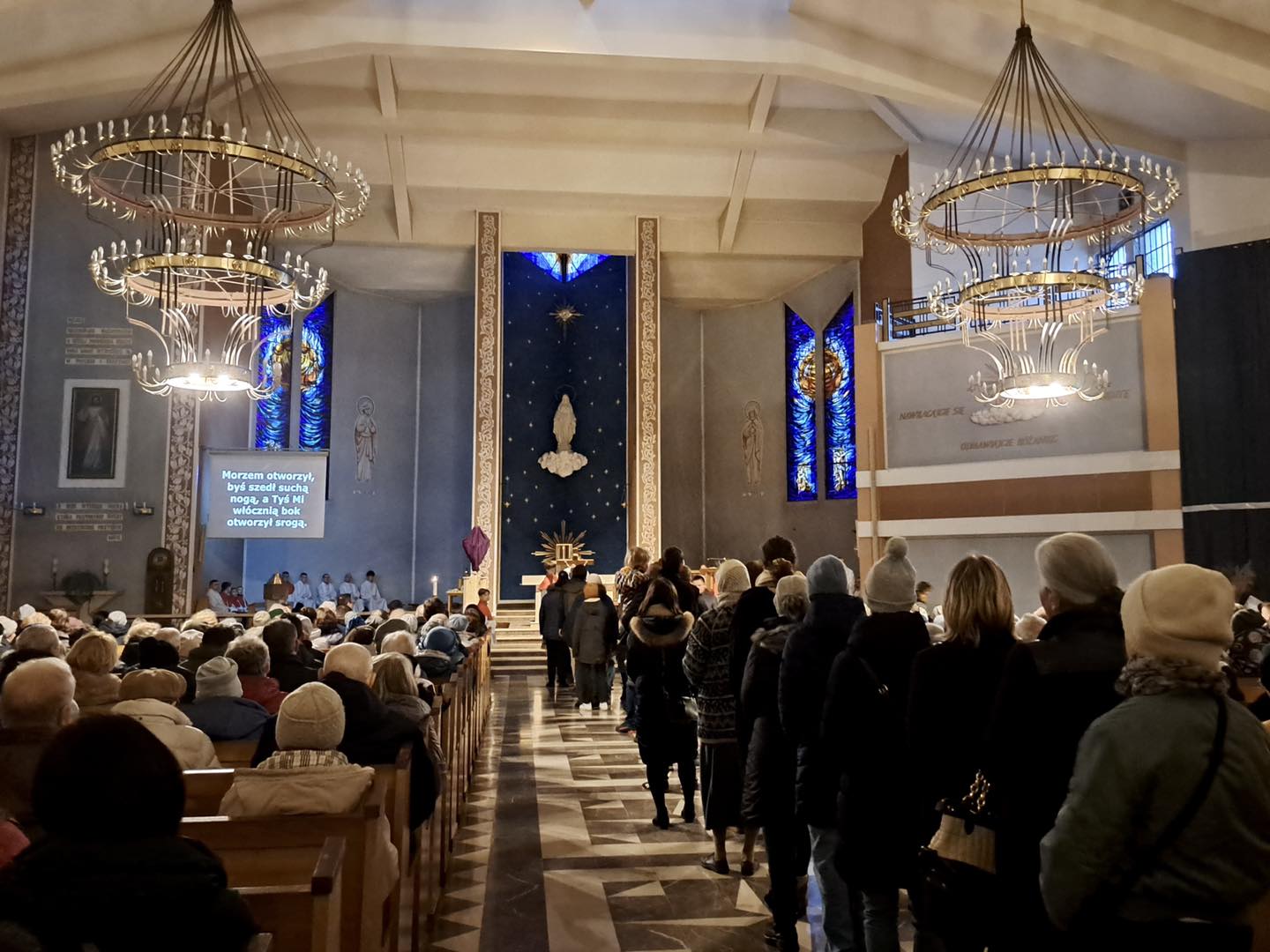 Liturgię Męki Pańskiej rozpoczęła procesja wejścia, której w tym dniu nie towarzyszył śpiew. Przewodniczący Liturgii ks. Damian Drozd sprawował ją w szatach koloru czerwonego, który w tym przypadku jest nie tyle kolorem męczeństwa, a bardziej królewskiej purpury. Jest to znak królewskiej godności Chrystusa, zwycięstwa nad śmiercią, które przychodzi do nas przez krzyż. Bardzo wymownym gestem jest prostracja głównego celebransa (łac. prostratio – padnięcie całym ciałem na ziemię). Wyraża on kondycję pierwszego człowieka i ból Kościoła. Punktem kulminacyjnym Liturgii Wielkiego Piątku jest adoracja Krzyża, do której przystąpili licznie zgromadzeni Parafianie, oddając cześć „drzewu krzyża, na którym zawisło zbawienie świata”. Ostatnim elementem Liturgii Męki Pańskiej była procesja do Grobu Pańskiego, przy którym wierni mogli adorować Krzyż i Najświętszy Sakrament przez całą noc.